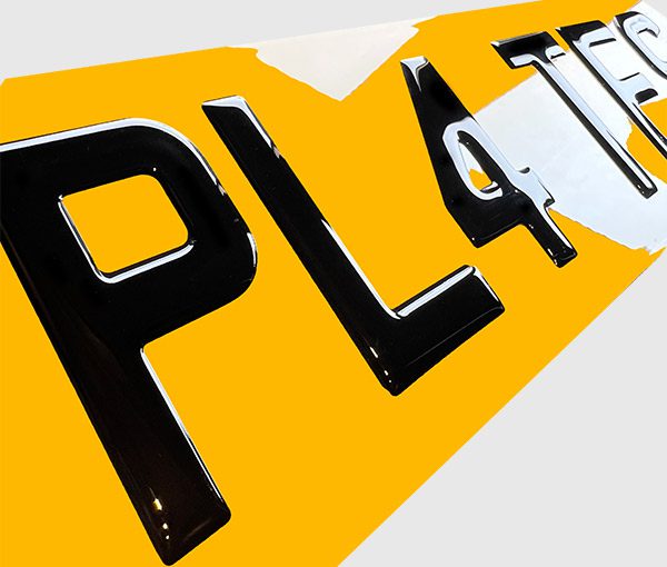 A process which involves high-quality artisanship, the first step involves printing and cutting the characters to the DVLA-approved dimensions, with expert precision to ensure the tight regulations are met. Next, it’s time to apply the polyurethane gel resin; a stellar-quality formula which is gently heated to avoid bubbling. Once created, the letters are removed and allowed a cooling period to solidify. After being left to cool, the ultra-strong adhesive backing is peeled away, and the characters are perfectly placed on your reflective plates. The final step before being packaged and making their way to your doorstep is the rolling phase, with the plate put through airtight rollers to ensure they’re completely smooth, free of even the tiniest of bubbles. Your 3D-effect plate is now complete, going through stringent quality checks before being given the go-ahead to be sent to you.